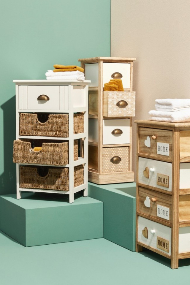 Sertarele sunt împletite din hârtie și lemn de Paulownia.