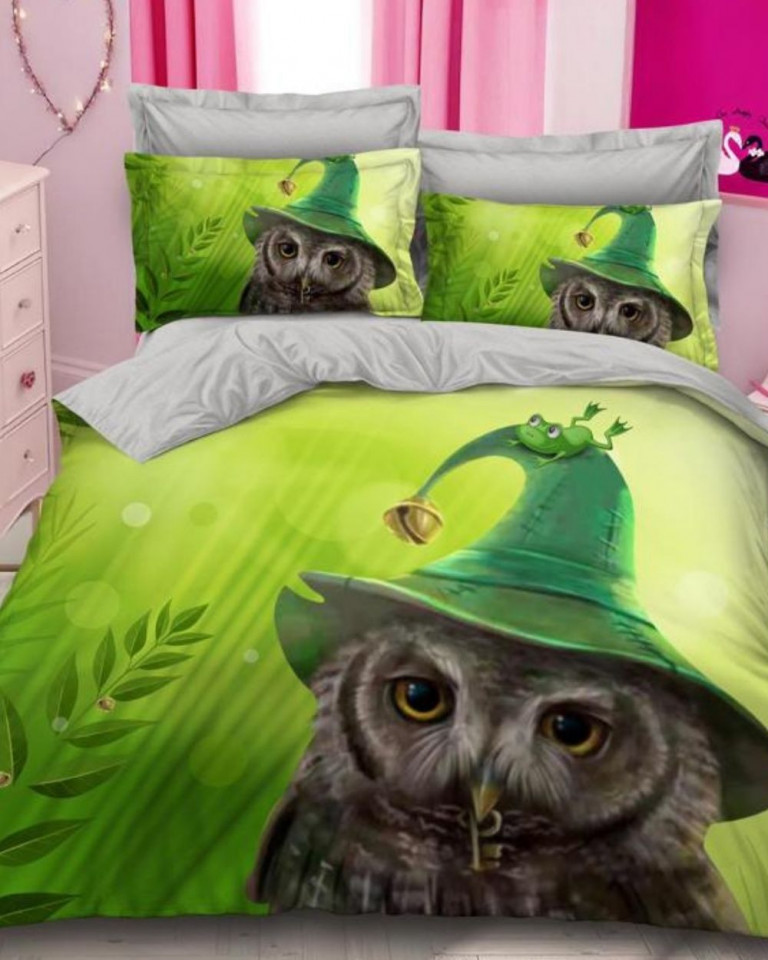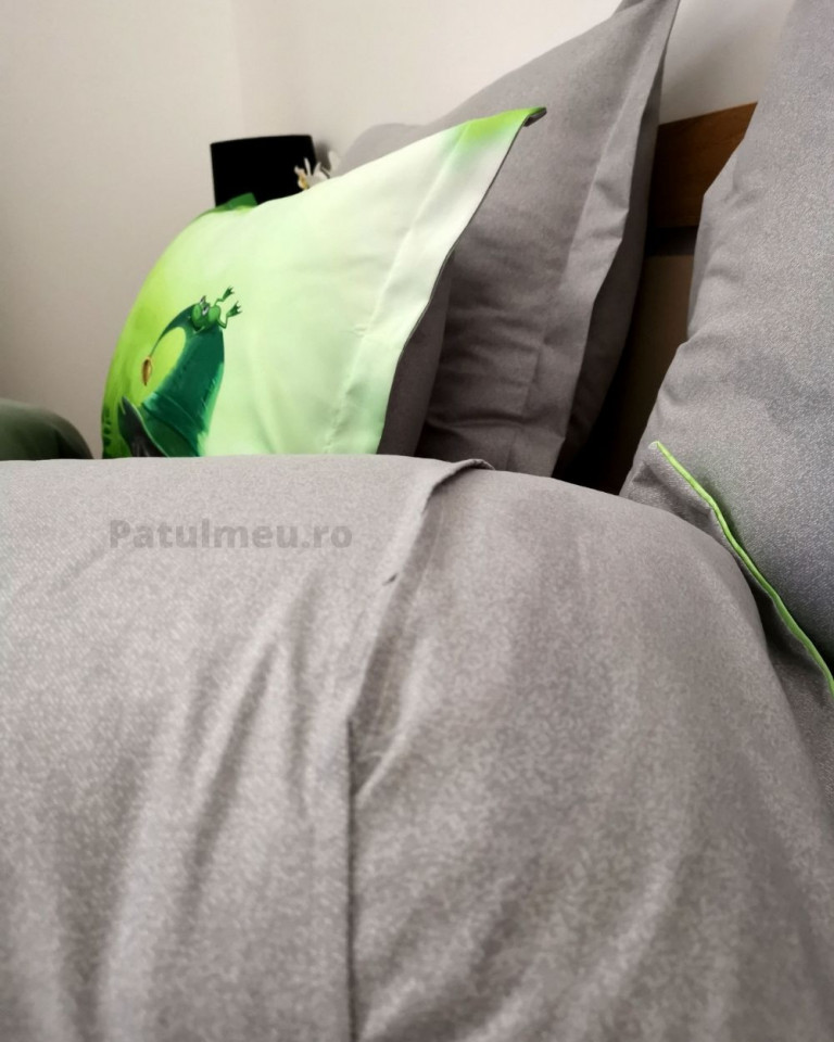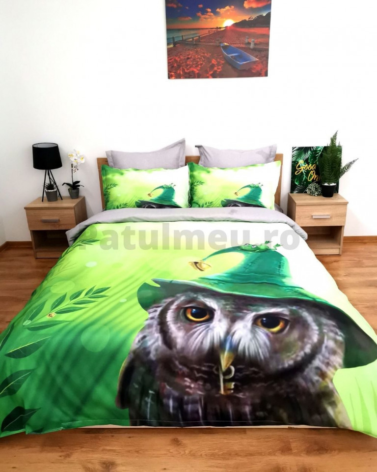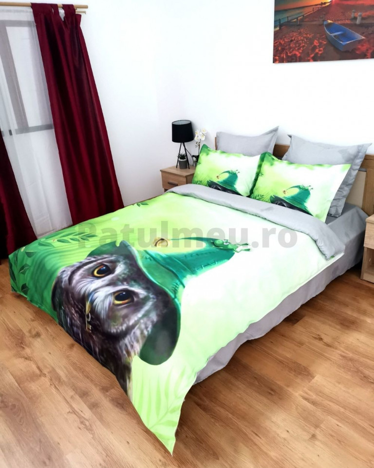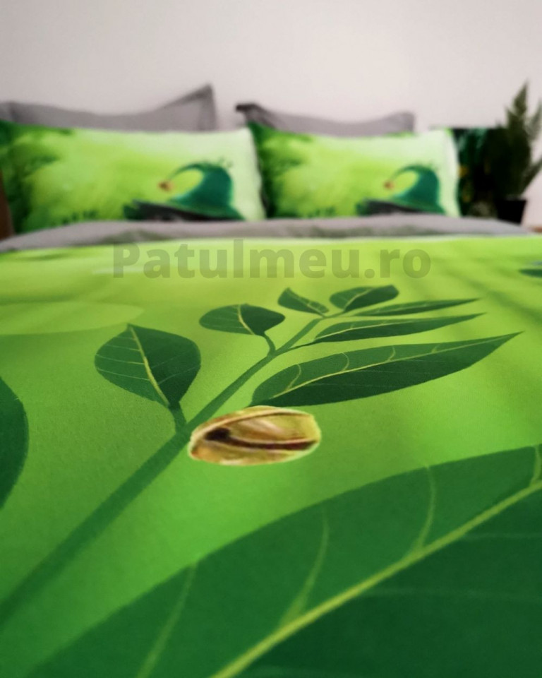 Lenjerie de pat cu 2 fete, imprimeu 3D, tesatura tip finet, pat 2 persoane, verde, 6 piese, A2-14