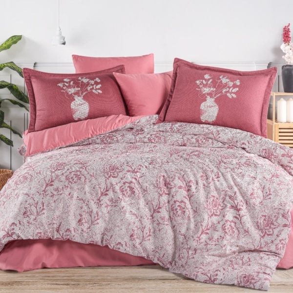 Set lenjerie de pat bumbac saten 100% Bolera | Hobby Home | roz prăfuit | floral | 6 piese | 2 persoane